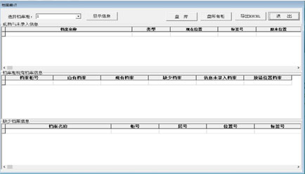 盤庫統計主要是對所有在庫檔案統計,找出放錯位置的檔案和寫過標簽號但沒有進行檔案錄 入的檔案?梢灾付ü褡咏y計,也可以所有柜子統計。